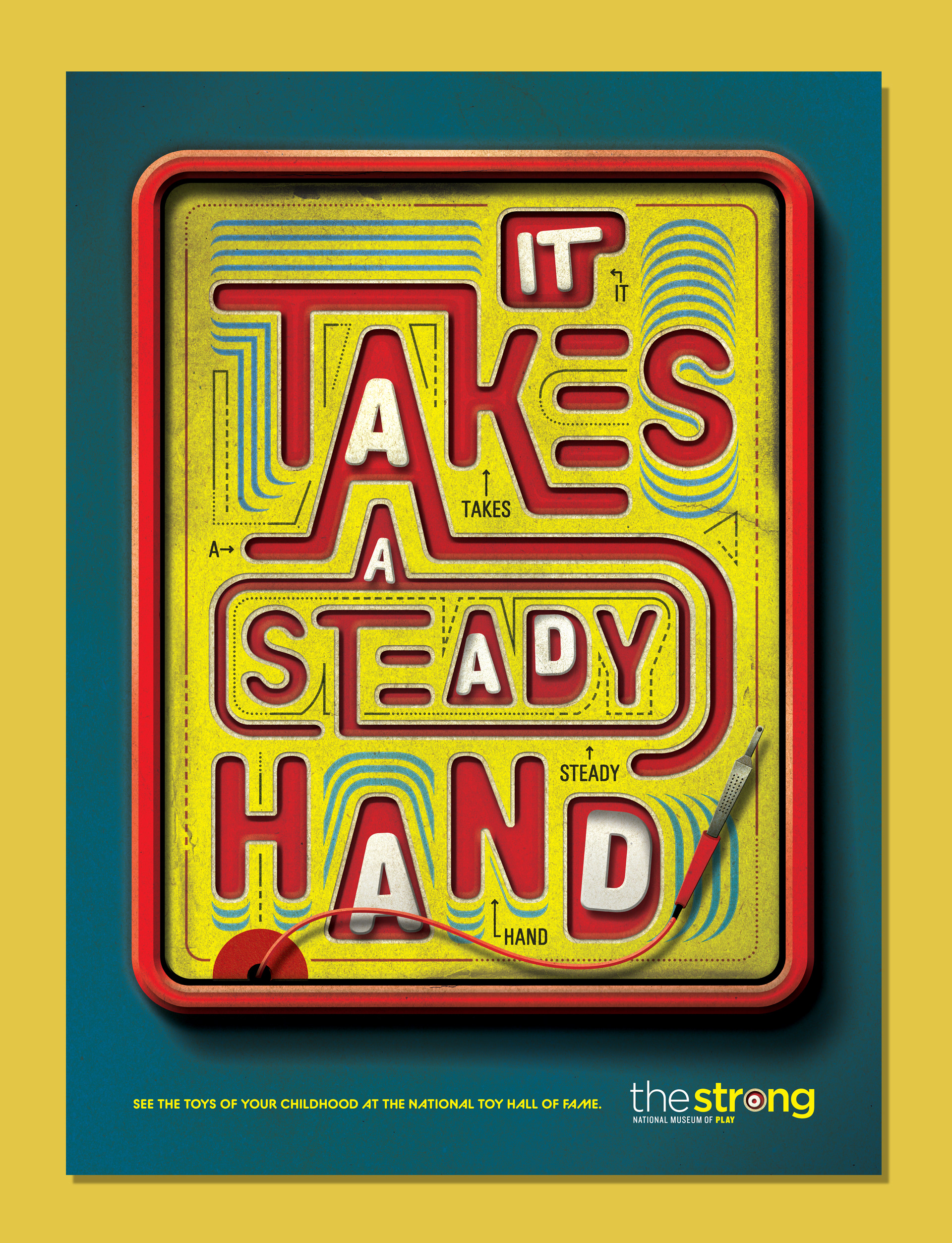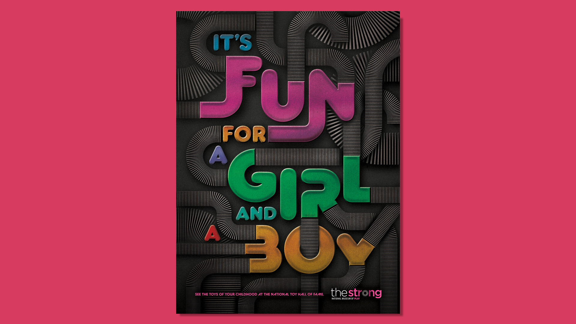 Campaign for The Strong National Museum of Play featuring famous 80's toy taglines designed in styles that evoked those toys.